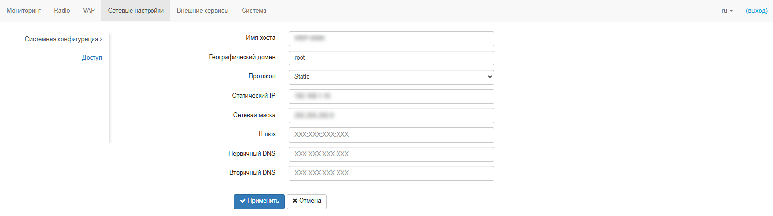 WEP-550K(root):/# manage-config apply (применение конфигурации на точку доступа)