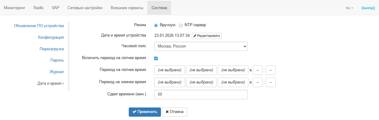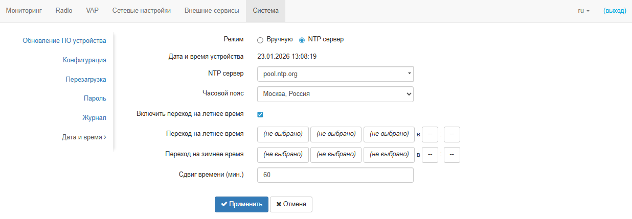Настройка даты и времени