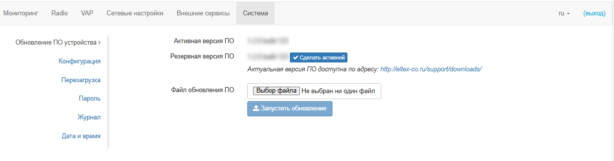 Обновление ПО устройства