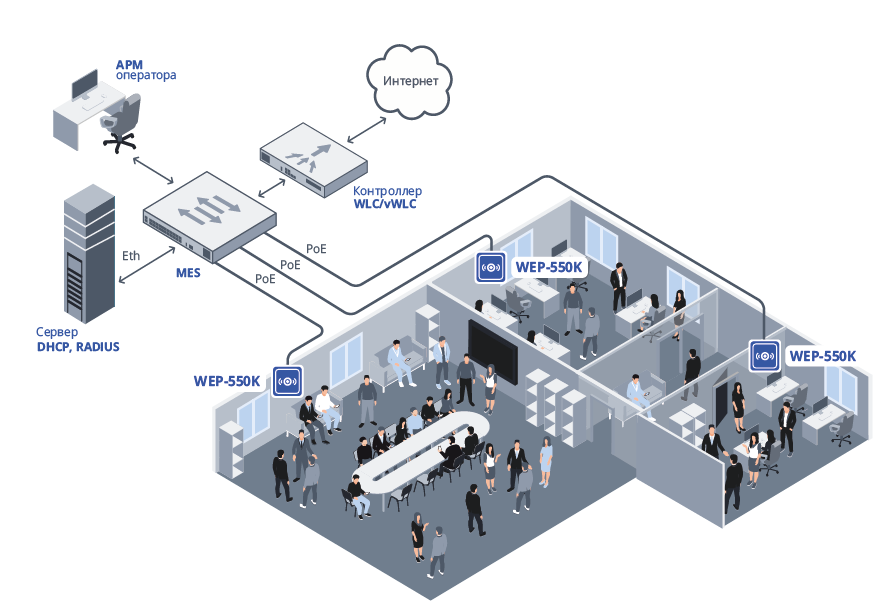 Для возможности предоставления доступа пользователей к высокоскоростной и безопасной сети разработаны беспроводные точки доступа WEP-550K.