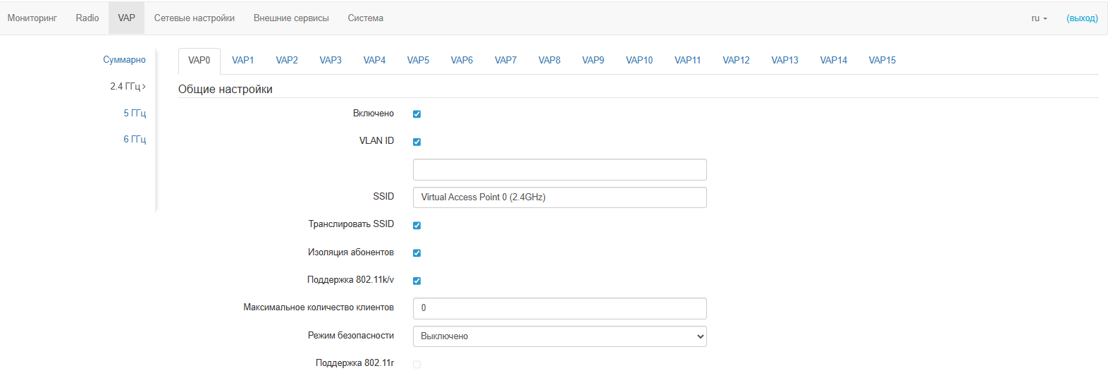 - 48 виртуальных точек доступа.