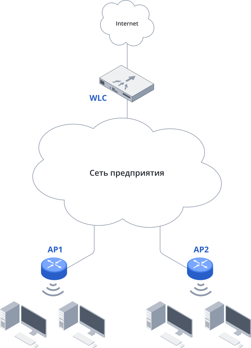 Central switchingрежим работы, при котором пользовательский трафик проходит через контроллер.