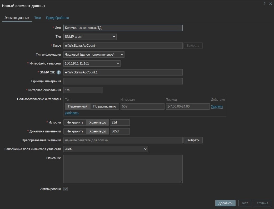После добавления WLC в узел связи, необходимо создать элементы данных, которые будут отслеживаться.