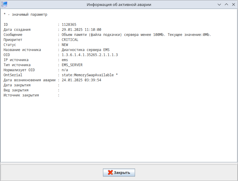 Для раскрытия подробностей об аварии необходимо дважды кликнуть по выбранному событию.