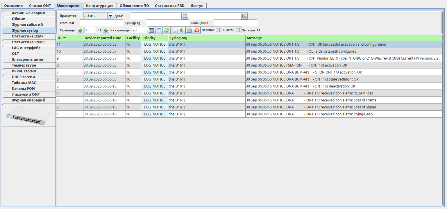 Более подробную информацию, касающуюся мониторинга OLT, можно получить в меню «Мониторинг».