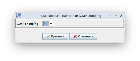 Настройка обработки multicast на OLT осуществляется в разделе «Multicast» вкладки «Конфигурация». В текущей реализации в этом разделе доступно только глобальное управление IGMP snooping. Параметр должен быть включен.