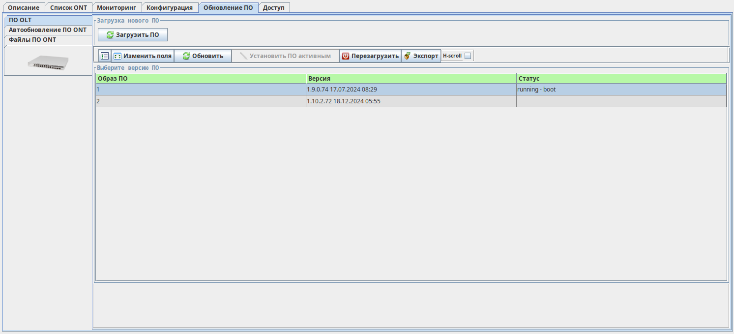 Вкладка «ПО OLT»