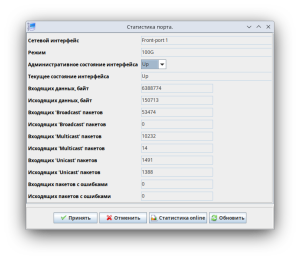 Кнопки статуса портов являются активными элементами, по нажатию осуществляется переход к окну информации об интерфейсах, где также возможно изменить административный статус порта.