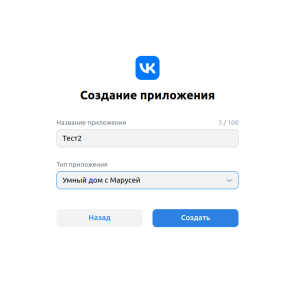| "" | ID приложения, полученный в шаге 4 | Идентификатор диалога, использующийся для отправки уведомлений УД ВК от имени созданного навыка. |