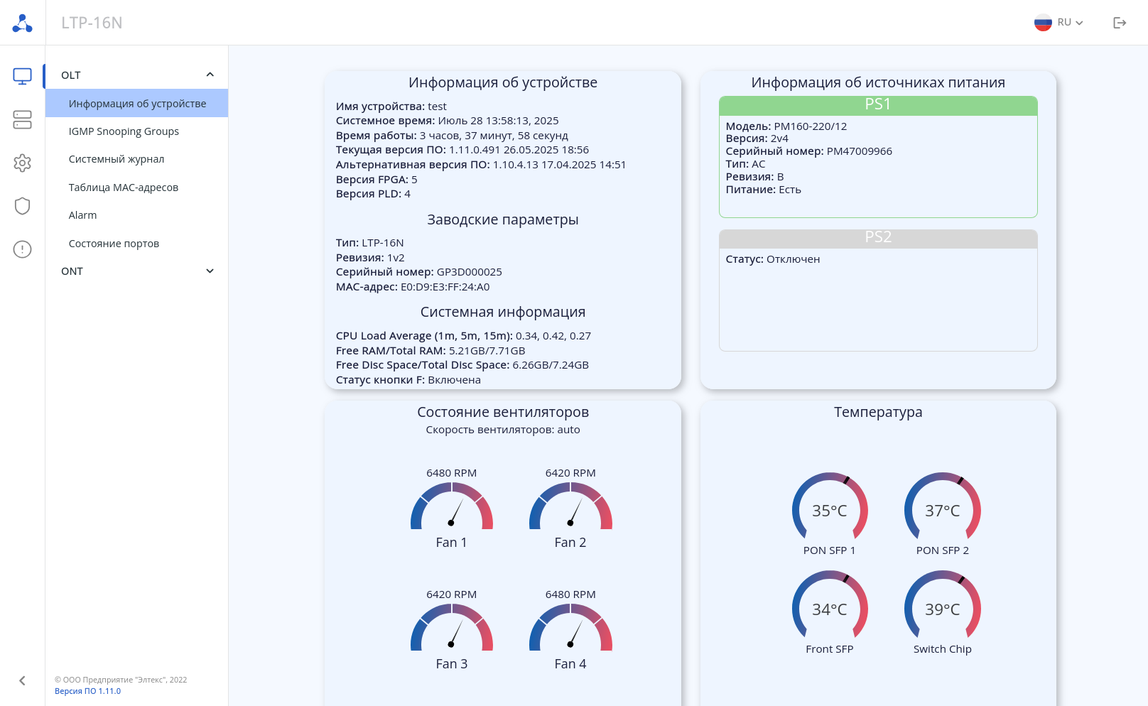OLT(Optical Line Terminal). Оптический линейный терминал — это станционное оборудование, устанавливаемое на узле связи оператора. Используется в технологии xPON (GPON, XGS-PON) как агрегирующий узел для подключения множества абонентских терминалов, работающих по данной технологии.