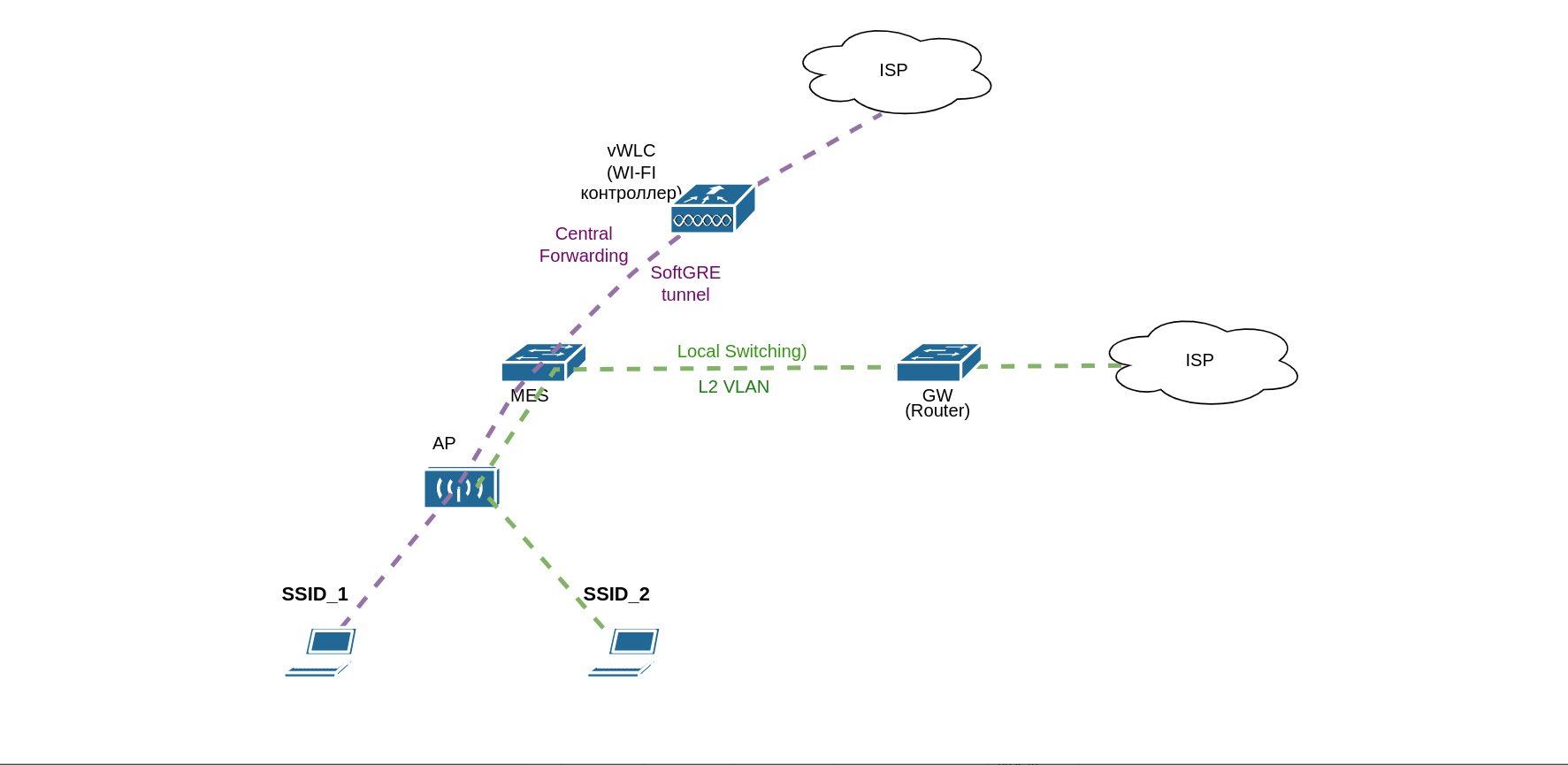 Central switching — режим работы, при котором пользовательский трафик проходит через контроллер.