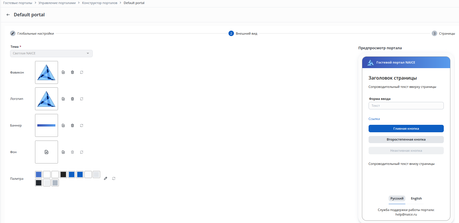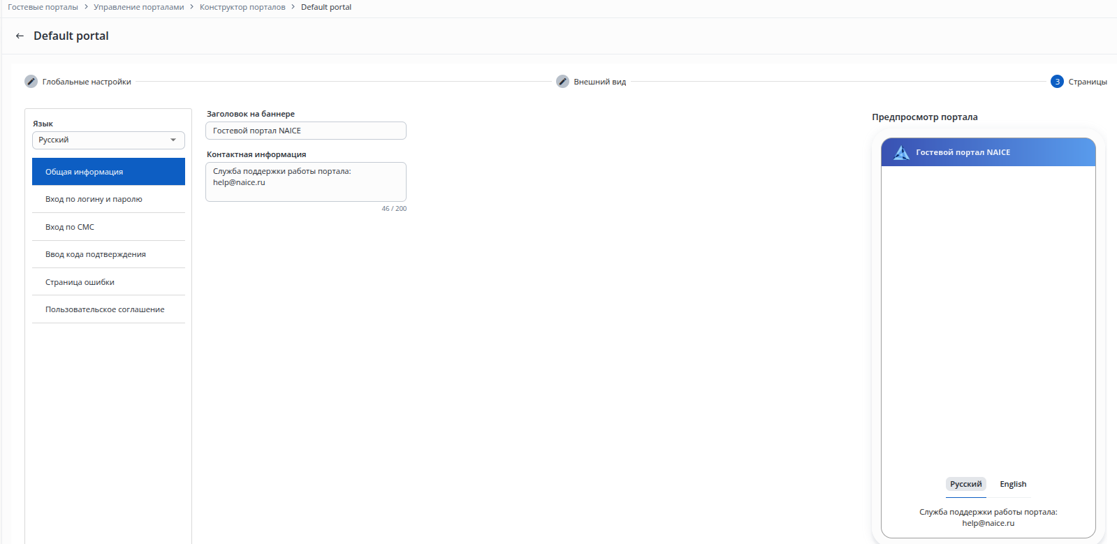 Перейти в раздел Гостевые порталы → Управление порталами → Конструктор порталов, добавить новый портал или отредактировать существующий: