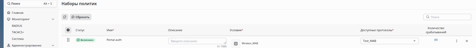 После перехода в режим редактирования ранее созданной политики MABAuth в блоке Политика аутентификации:
