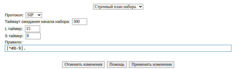 Следуя инструкции, настроите план набора. Выберите «Строчный план набора«. В поле «Правило:» впишите "[*#0-9]."