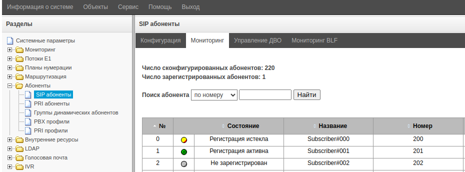 Перейдите в меню «Абоненты» → «SIP абоненты».