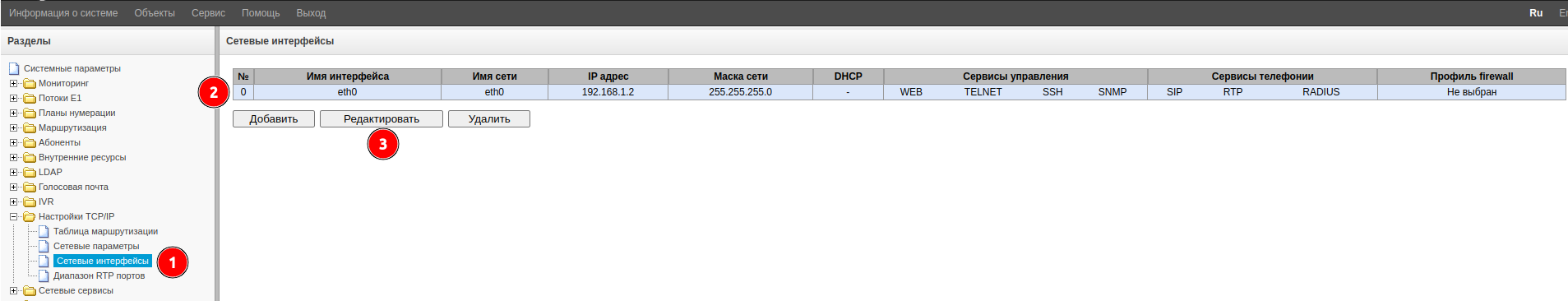 - Боковое меню «Настройки TCP/IP» → «Сетевые интерфейсы».
