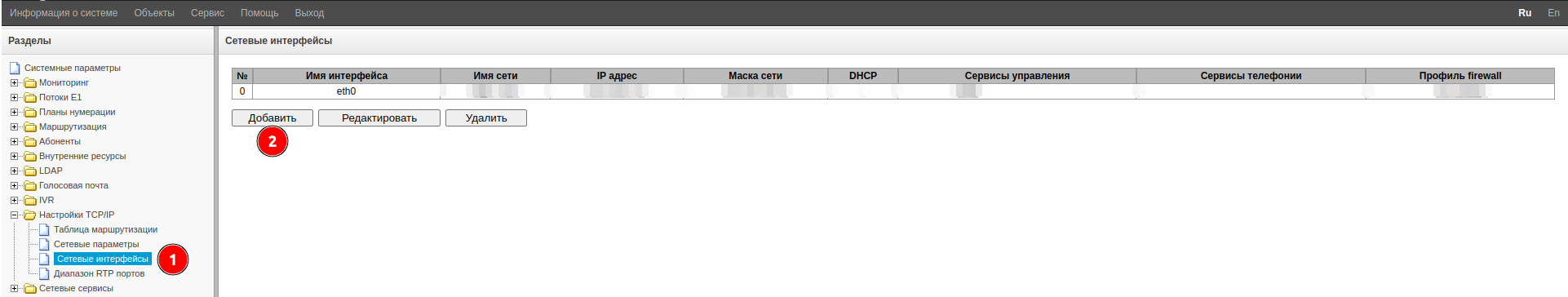 1. Перейдите в меню «Настройки TCP/IP» → «Сетевые интерфейсы».