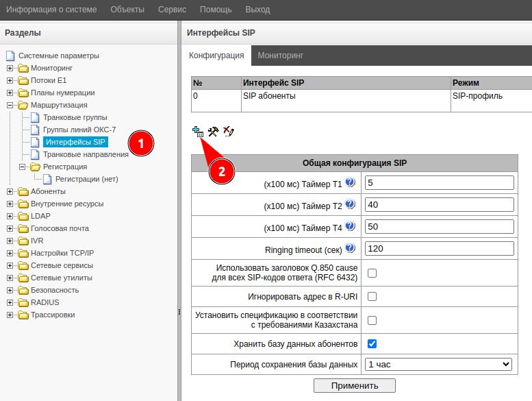 - Перейдите в меню «Маршрутизация» → «Интерфейсы SIP».
