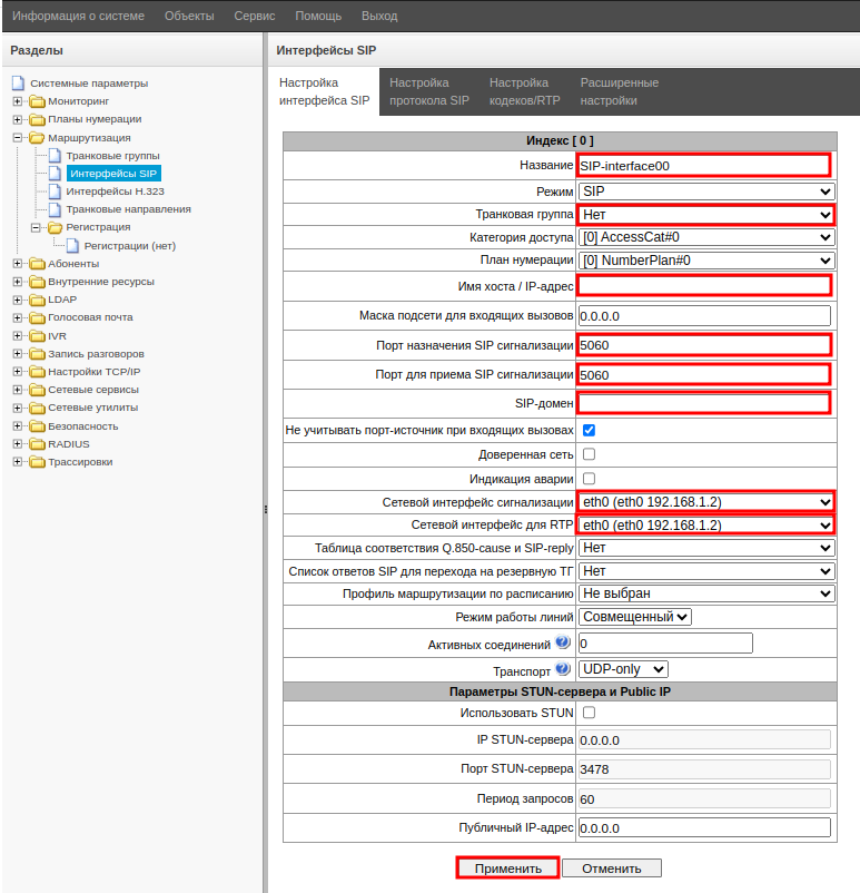 - Перейдите во вкладку «Настройка интерфейса SIP».