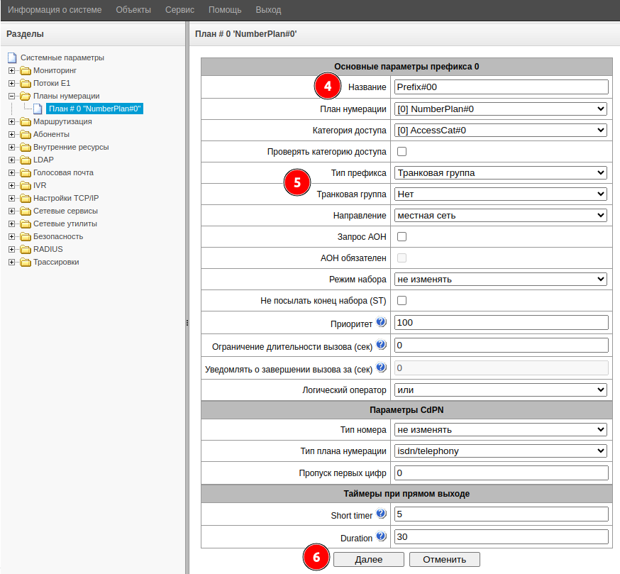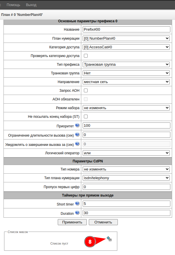 - «Транковая группа» – выберите транковую группу, к которой будет применен план нумерации