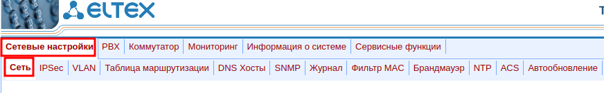1. Перейдите в web-интерфейсе TAU в меню «Сетевые настройки» → «Сеть».