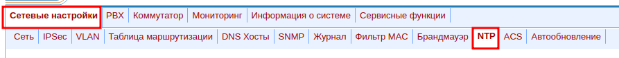 1. Перейдите в web-интерфейсе TAU в меню «Сетевые настройки» → «NTP».