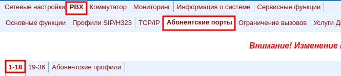 - Перейдите в web-интерфейсе TAU в меню «PBX» → «Абонентские порты».