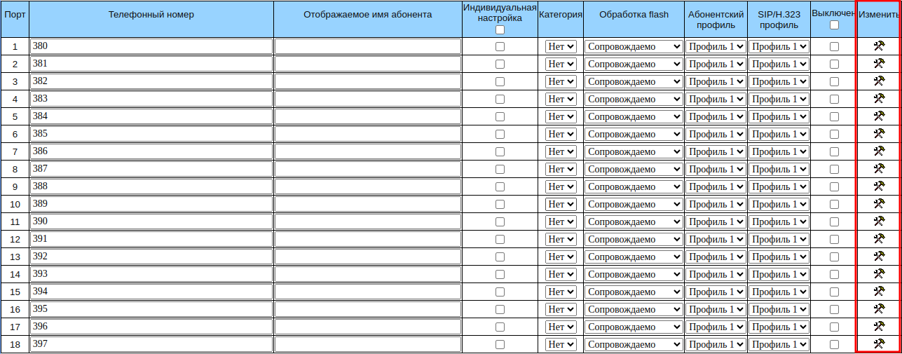 - Перейдите в web-интерфейсе TAU в меню «PBX» → «Абонентские порты».