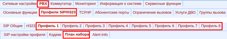 1. Перейдите в web-интерфейсе TAU в меню «PBX» → «Профили SIP/H323».
