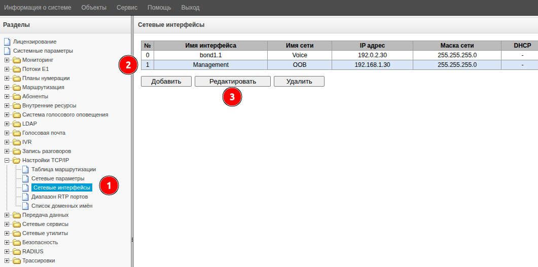 1. Перейдите в меню «Настройки TCP/IP» → «Сетевые интерфейсы».
