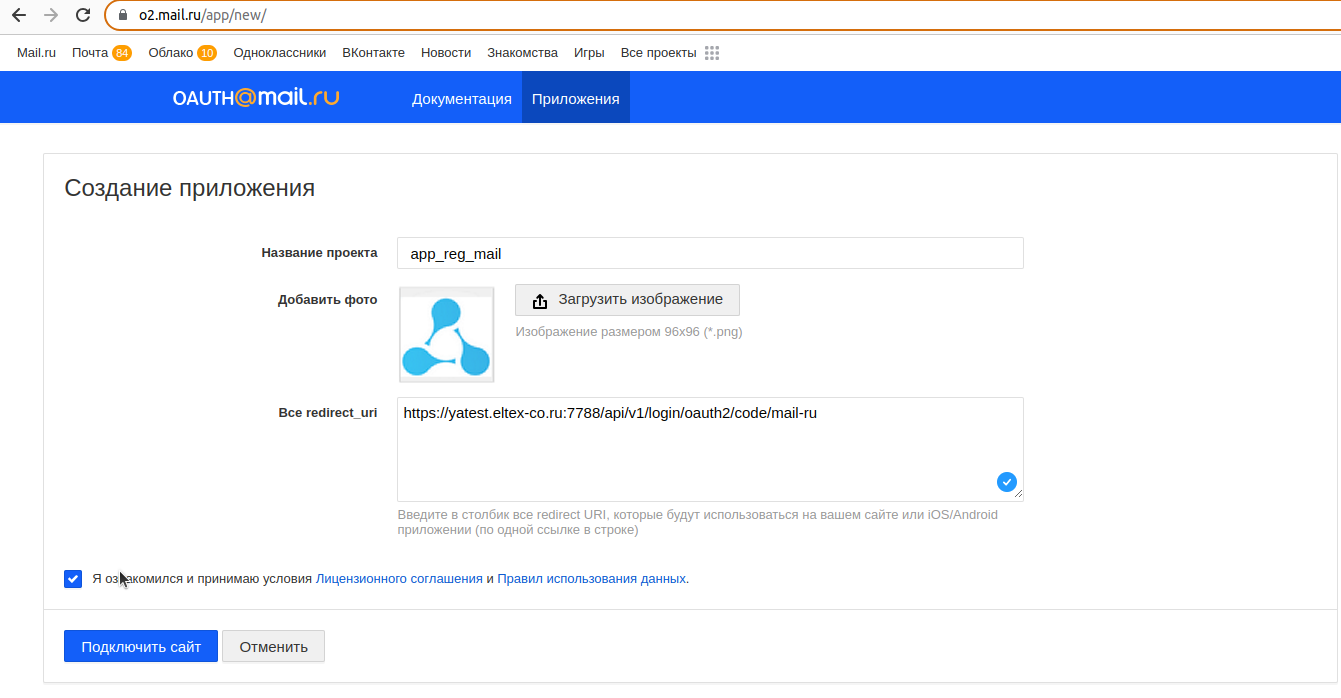 1. Войдите в сервис OAuth Mail через аккаунт Mail, с помощью которого вы планируете продолжать разработку.