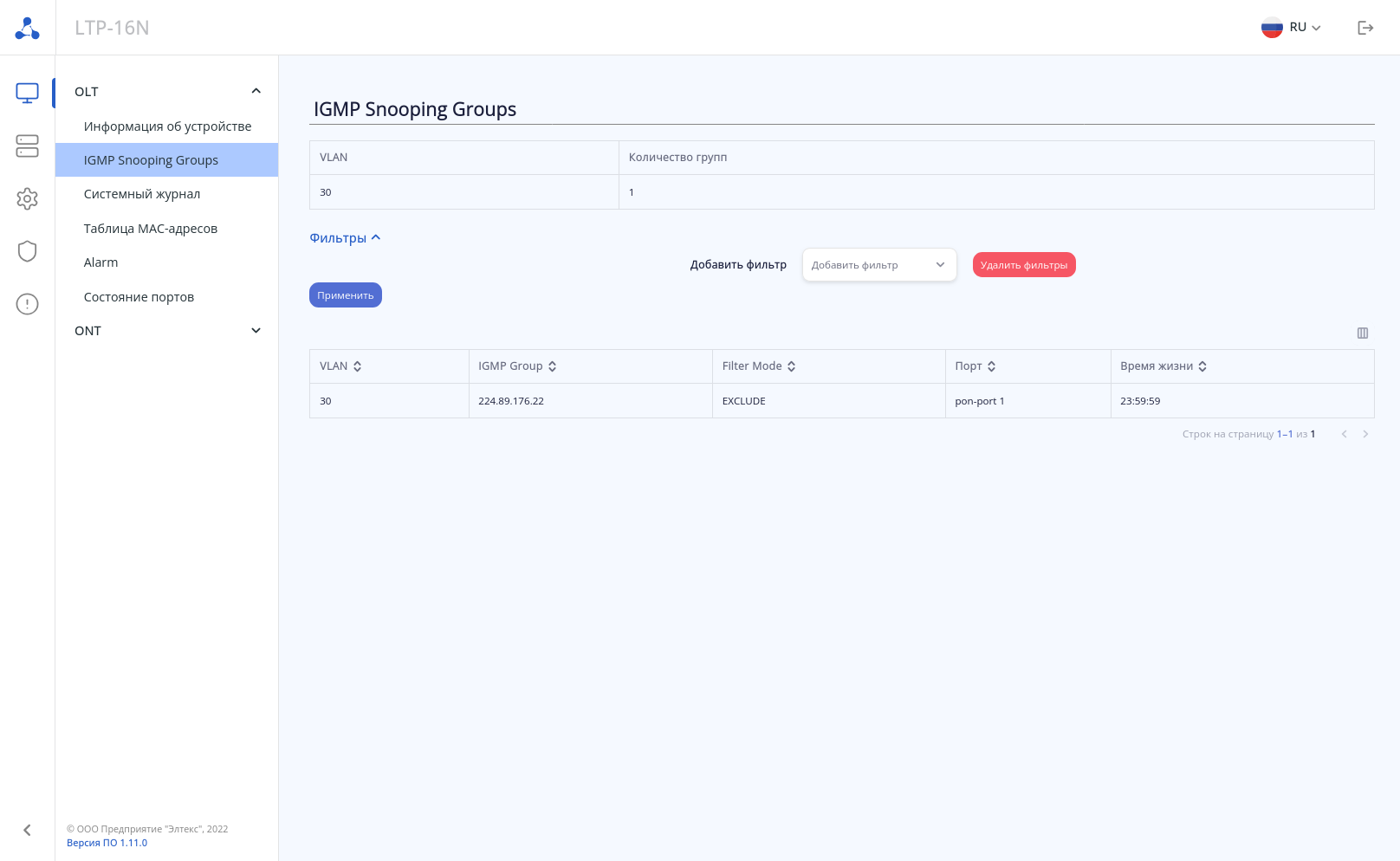 LTP-16N(config)(if-front-1)# vlan allow 100			#настройка VLAN управления на uplink-интерфейсе OLT