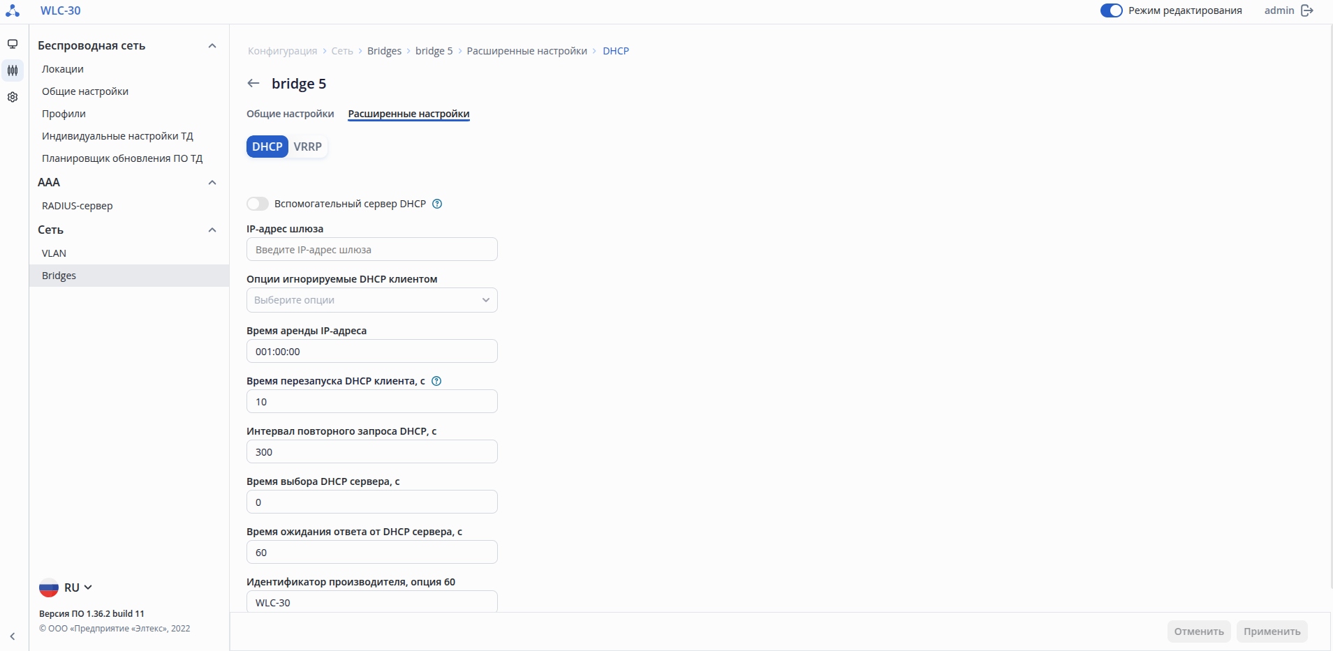 Начало работы на устройствах ESR c лицензией WLC
