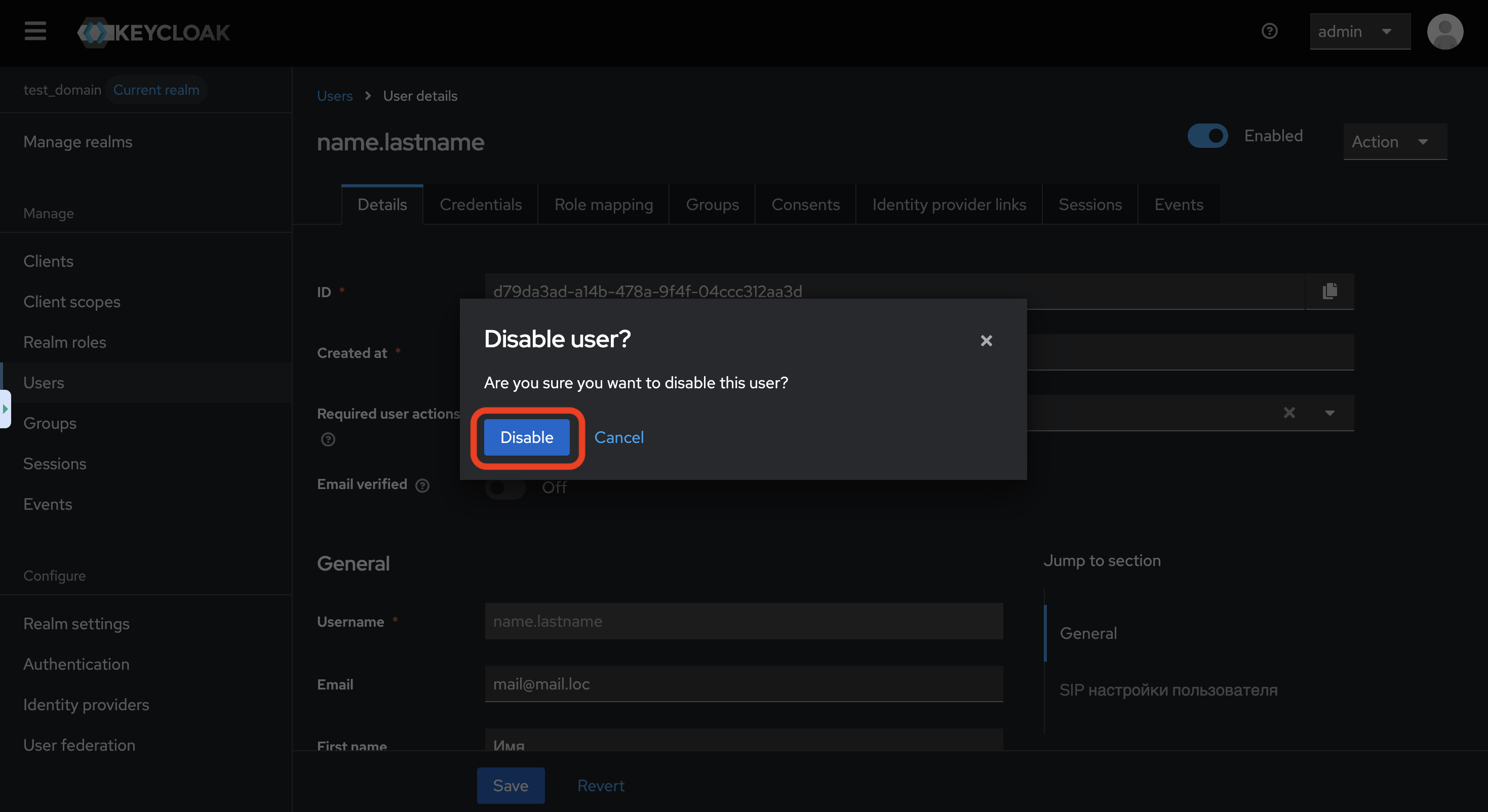 Подтвердите деактивацию, нажав кнопку «Disable»:
