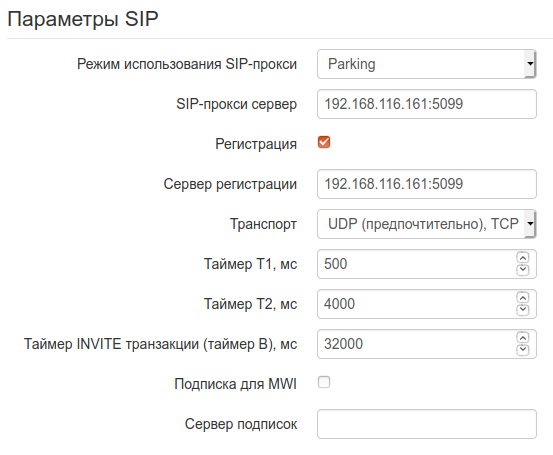 • Если используются отличные от стандартных (5060) порты сигнализации, то их нужно задать в полях "Порт назначения SIP сигнализации" и "Порт для приема SIP сигнализации";