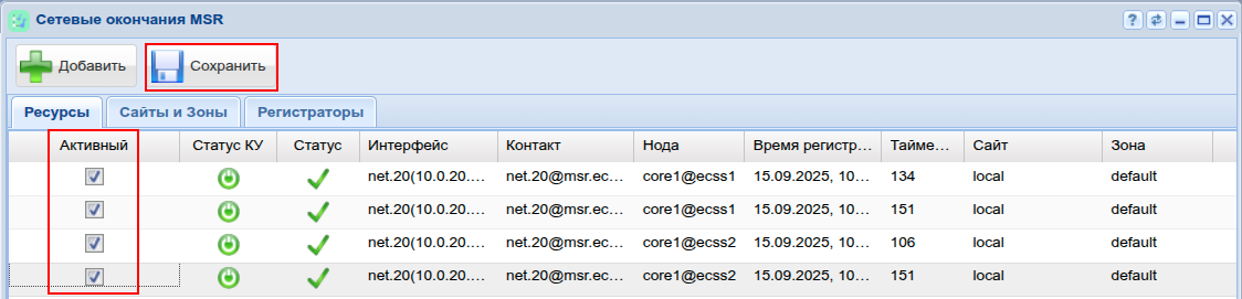 В ней указаны текущие настройки, согласно которым происходит регистрация msr на core.