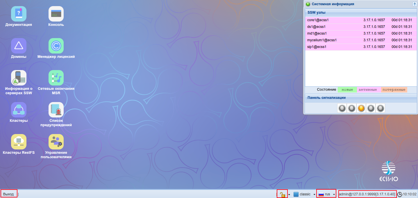 На всех серверах системы желательно указать одинаковое имя пользователя (любое, кроме ssw). Лицензия ECSS-10 привязывается к ключу eToken/ruToken и к имени компьютера (hostname). Системный пользователь ssw создается при инсталляции пакета ecss-user.