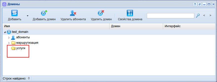 Supplementary services successfully added in the domain test_domain.