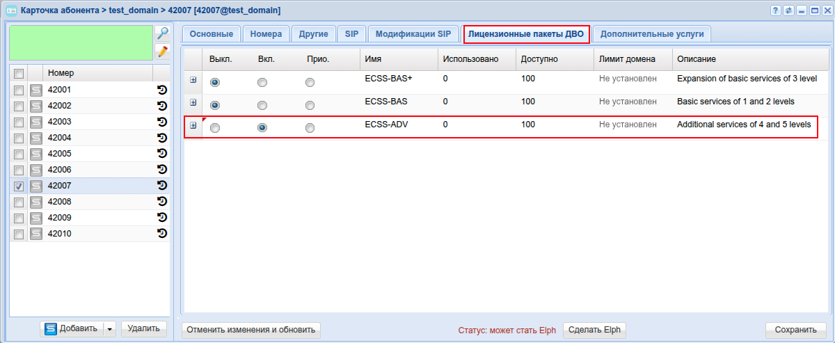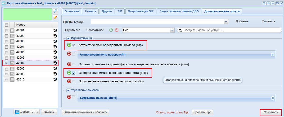 Теперь при создании абонентов можем использовать дополнительные услуги.