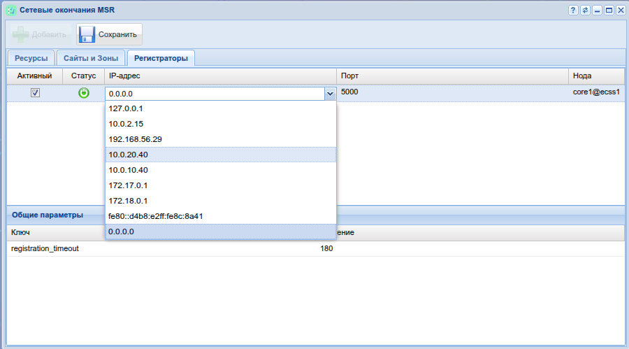 • <common parameter> - общий параметр медиарегистратора для всех нод: registration-timeout;