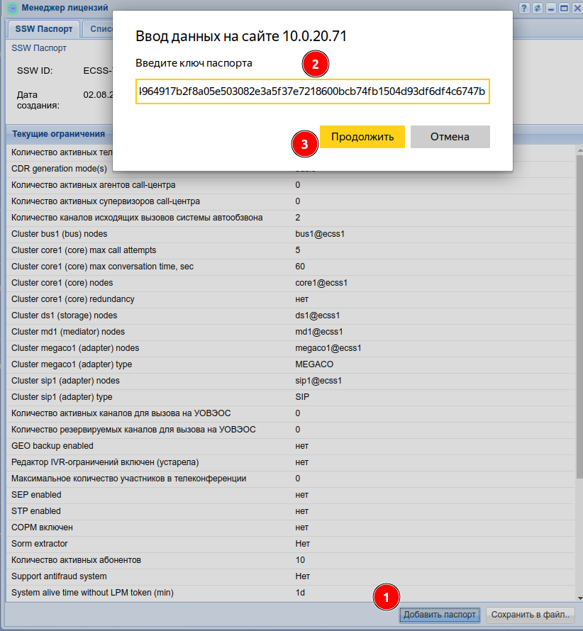 Далее необходимо загрузить паспорт и лицензии в систему: