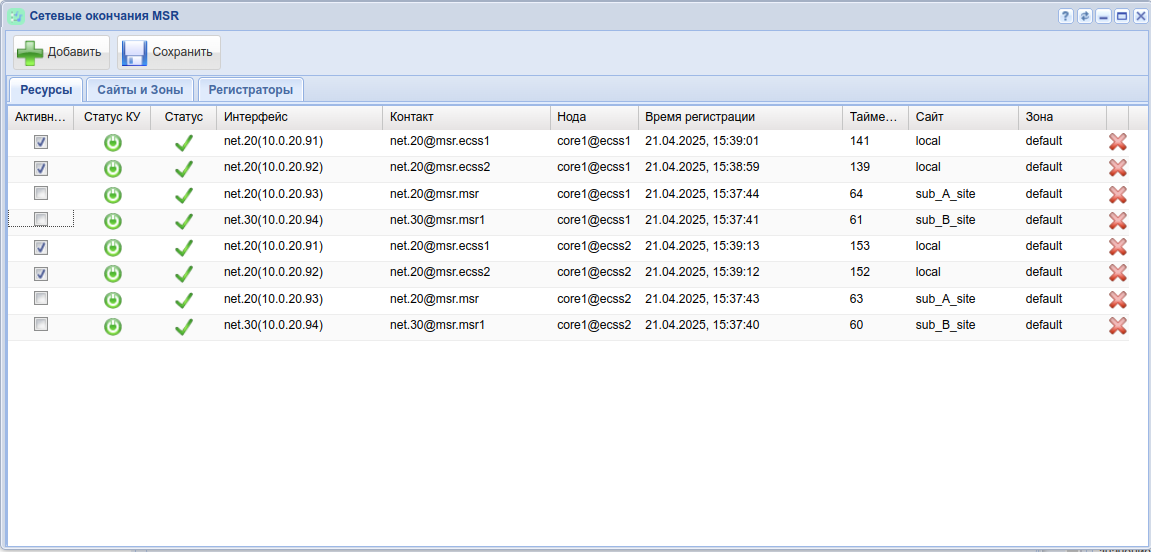 Проверяем, что новый MSR зарегистрировался на ecss1/ecss2 нодах: