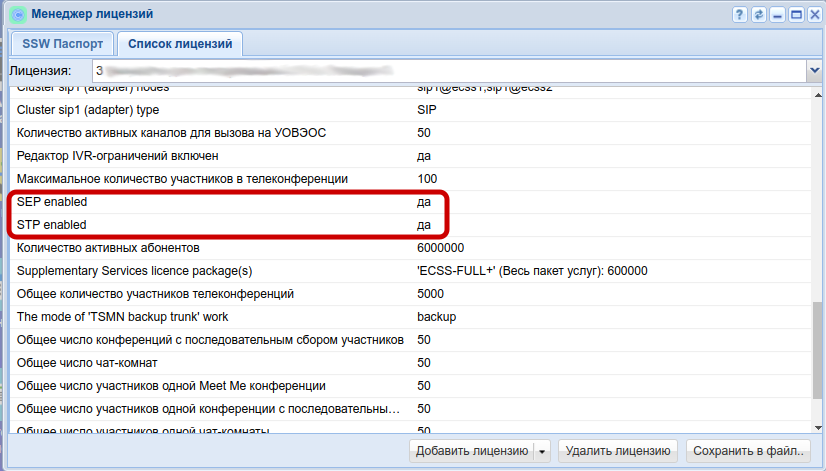 - Проверьте наличие и поддержку SIGTRAN SEP STP=true (на рисунке ниже выделены необходимые элементы).
