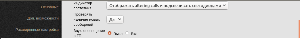 Для активации MWI следует перейти на вкладку настройки телефона, доп. возможности и выбрать раздел другие настройки доп. возможностей и активировать опцию проверять наличие новых сообщений: