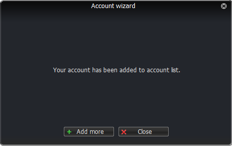 6. Далее можно добавить еще одну учетную запись нажатием кнопки «Add More» или закрыть мастер добавления учетных записей кнопкой «Close», рисунок 5.