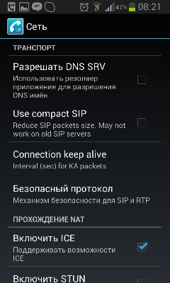Рисунок 2 – Внешний вид приложения CSipSimple, выбор меню «Изменить»