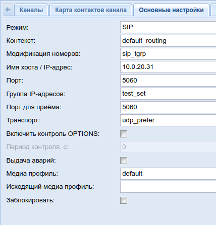 1. В данном случае при создании обычного SIP-транка c регистрацией на SIP-сервере станции-партнере, в «Основные настройки» SIP-транка задать сокет (имя хоста/IP-адрес:порт) встречной стороны и данные для исходящей аутентификации: