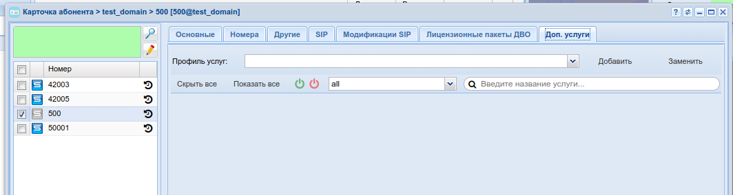 Если политика применения лицензионных пакетов услуг создана и активна, то выбранные услуги в параметрах абонента будут отображаться следующим образом: