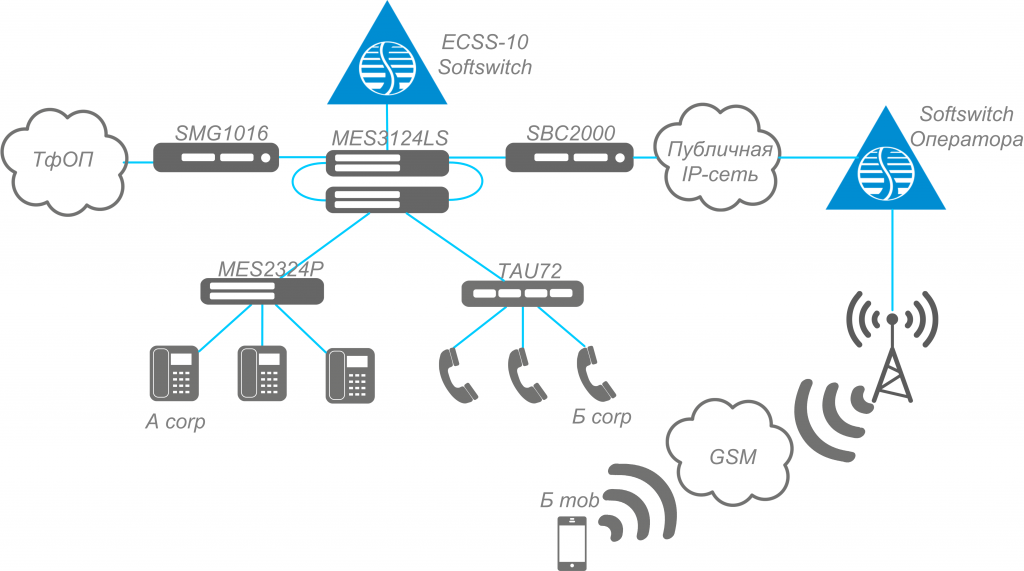 - Абонент пользующийся услугами FMC-light имеет доступ ко всем ДВО которые поддерживает АТС ECSS-10 SoftSwitch.