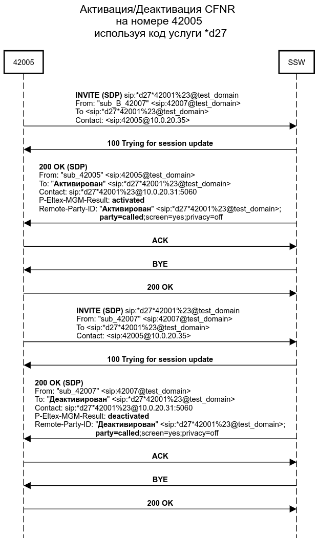 Так же SSW посылает в RTP пакетах фразу информатора — "Услуга активирована" которую абонент прослушивает в трубку или на динамик ТА.